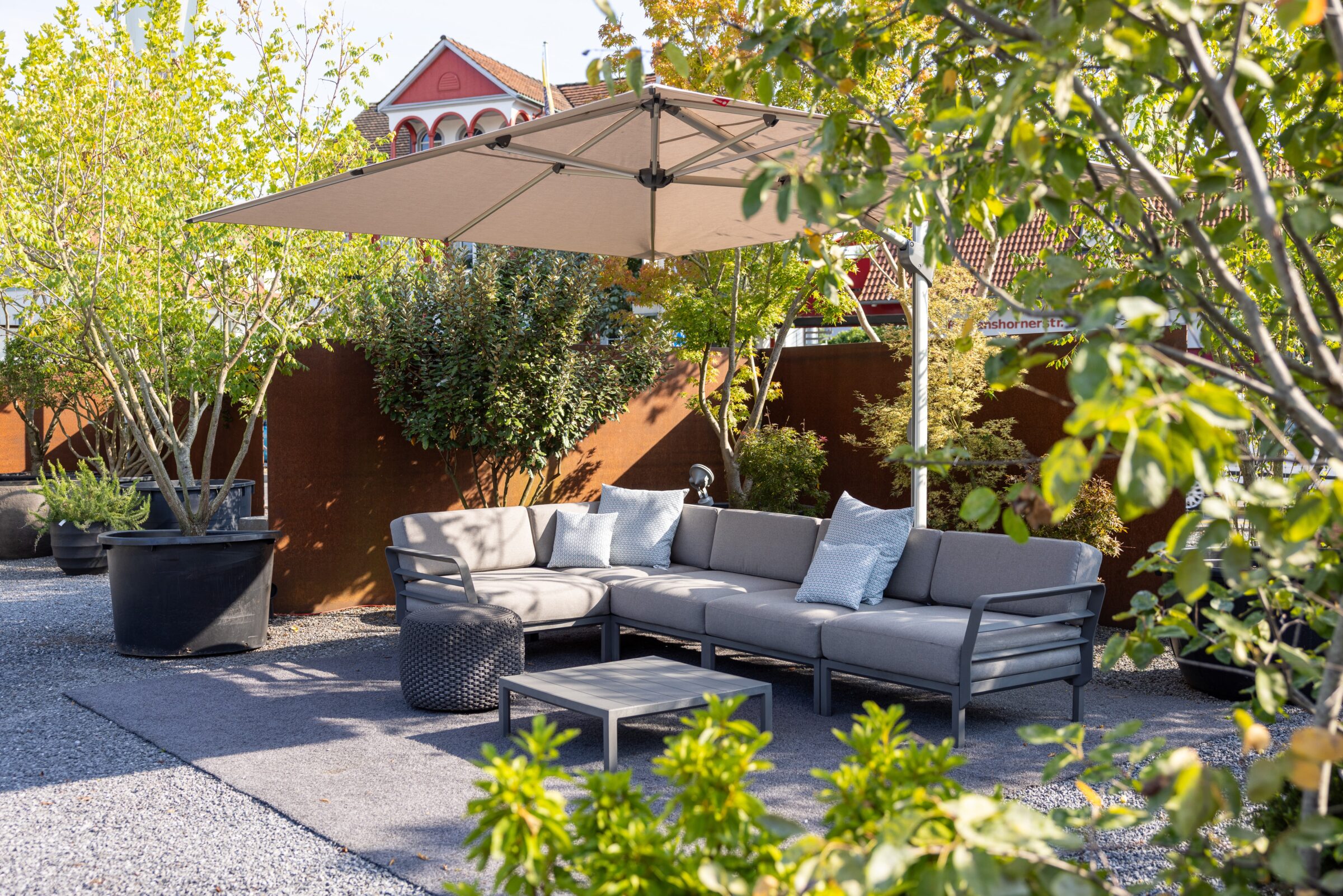Für den puren Gartengenuss ist ein schattiges Plätzchen unabdingbar. Sind keine natürlichen Schattenspender vorhanden, kann mit Sonnenschirmen oder Beschattungen optimal nachgeholfen werden.